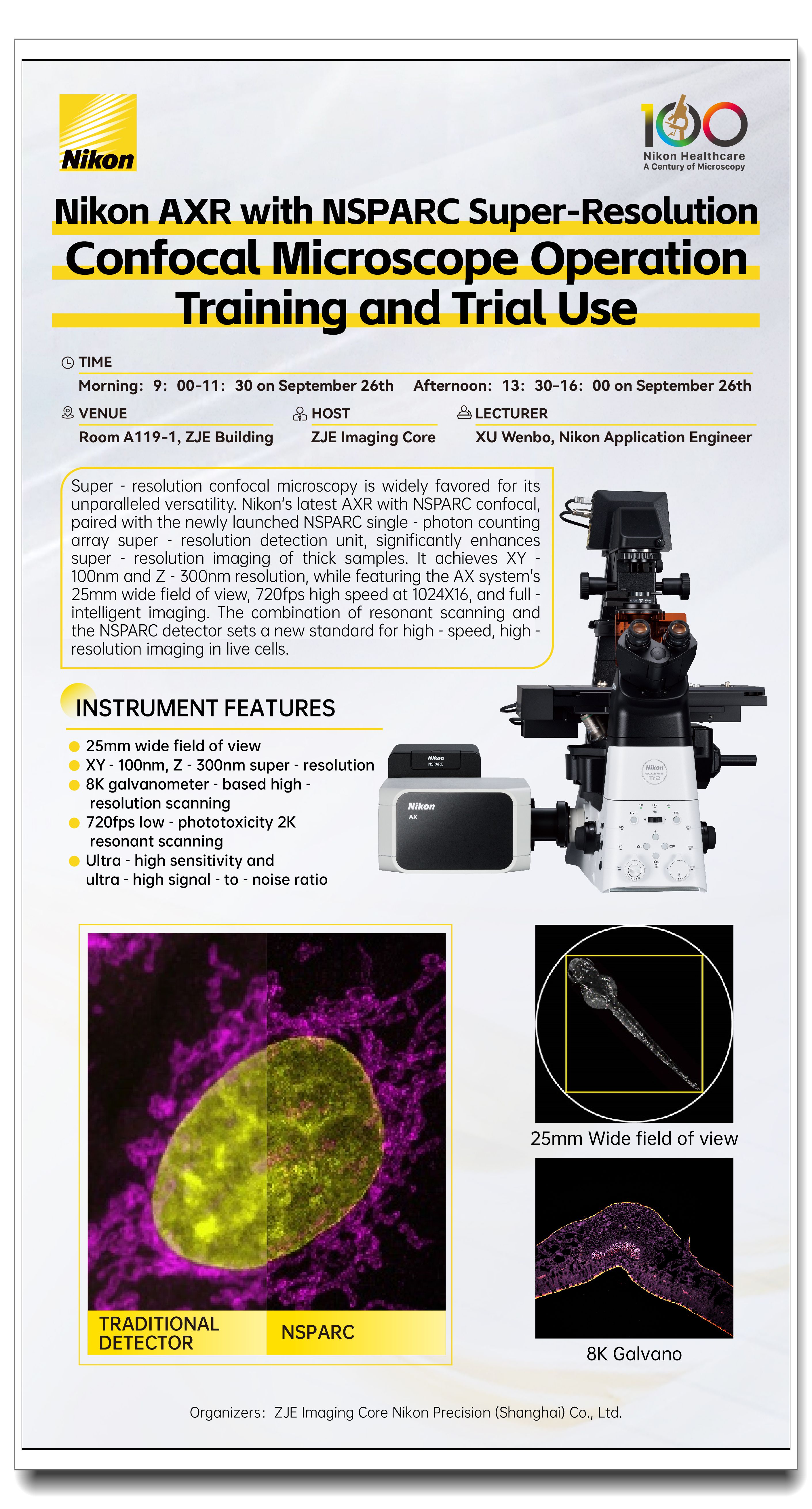 ZJE公共技术平台—尼康AXR NSPARC超分辨率共聚焦显微镜讲座及仪器展示(DEMO)