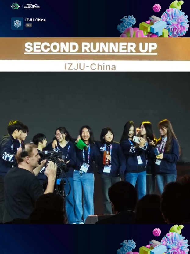 On November 1 (Beijing Time), the 2025 iGEM Competition concluded in Paris, France. The IZJU-China team, consisting of undergraduate students from ZJE, stood out among 412 global teams, winning a Gold Medal and the 2nd Runner-up title in the undergraduate track—the best performance ever achieved by a ZJE team. With deep insight into the challenge of antimicrobial resistance, the team pioneered the FoCas platform, which integrates a gene editing system and DNA origami structures. Their project earned them two Award & Special Prizes: Best Infectious Diseases Project and Best Part Collection, along with a Nomination for Best Model.