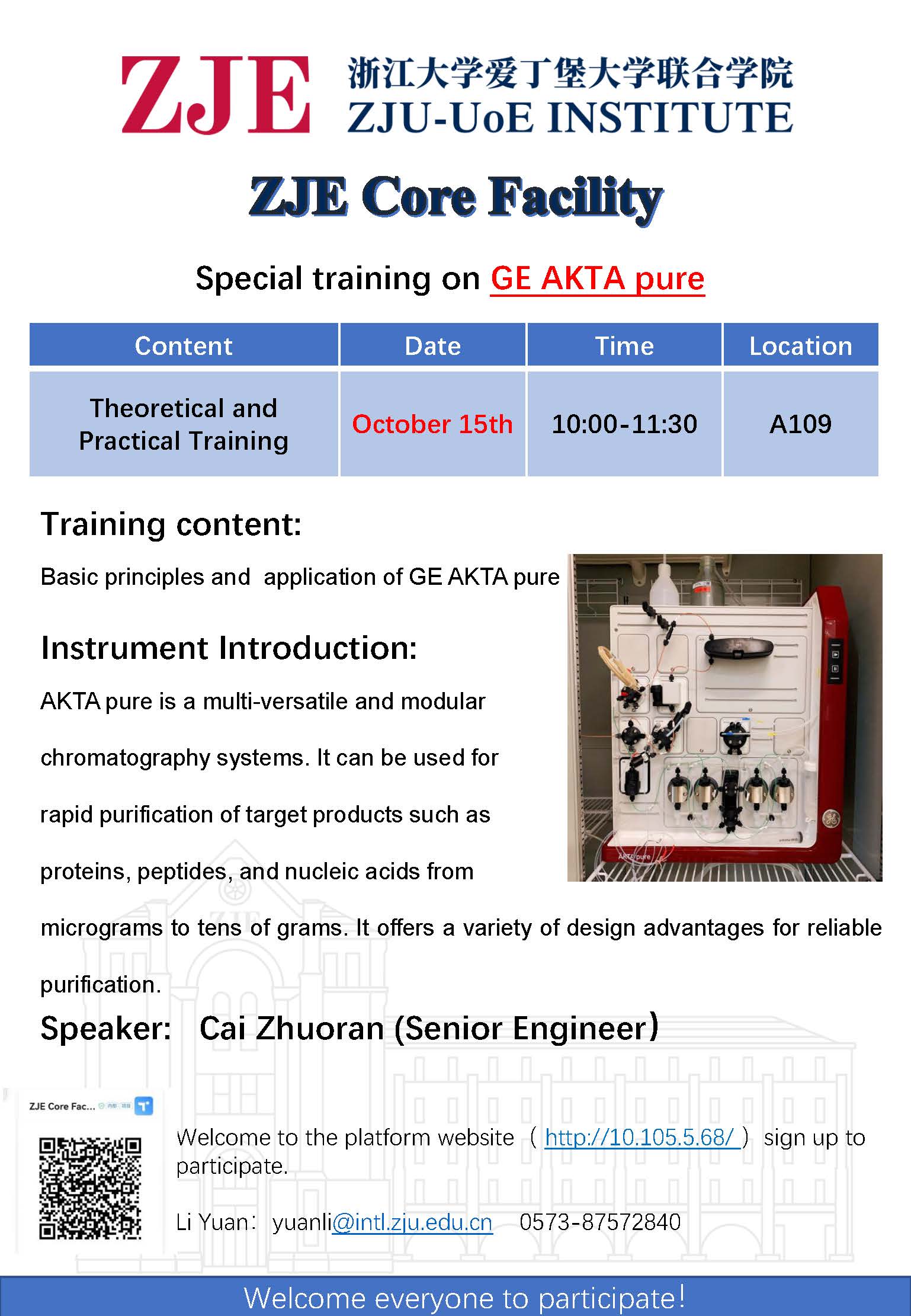 ZJE Core Facility Special training on GE AKTA pure